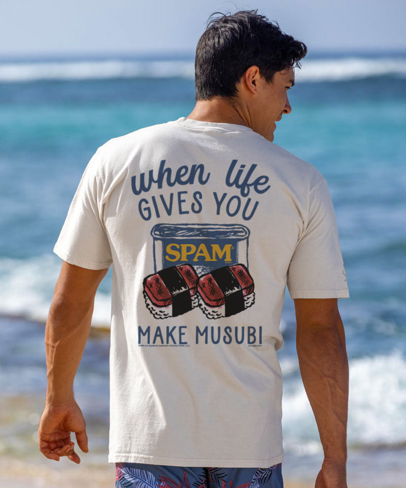 Man wearing a tan shirt with a tribal turtle design putting surfboards onto a car
